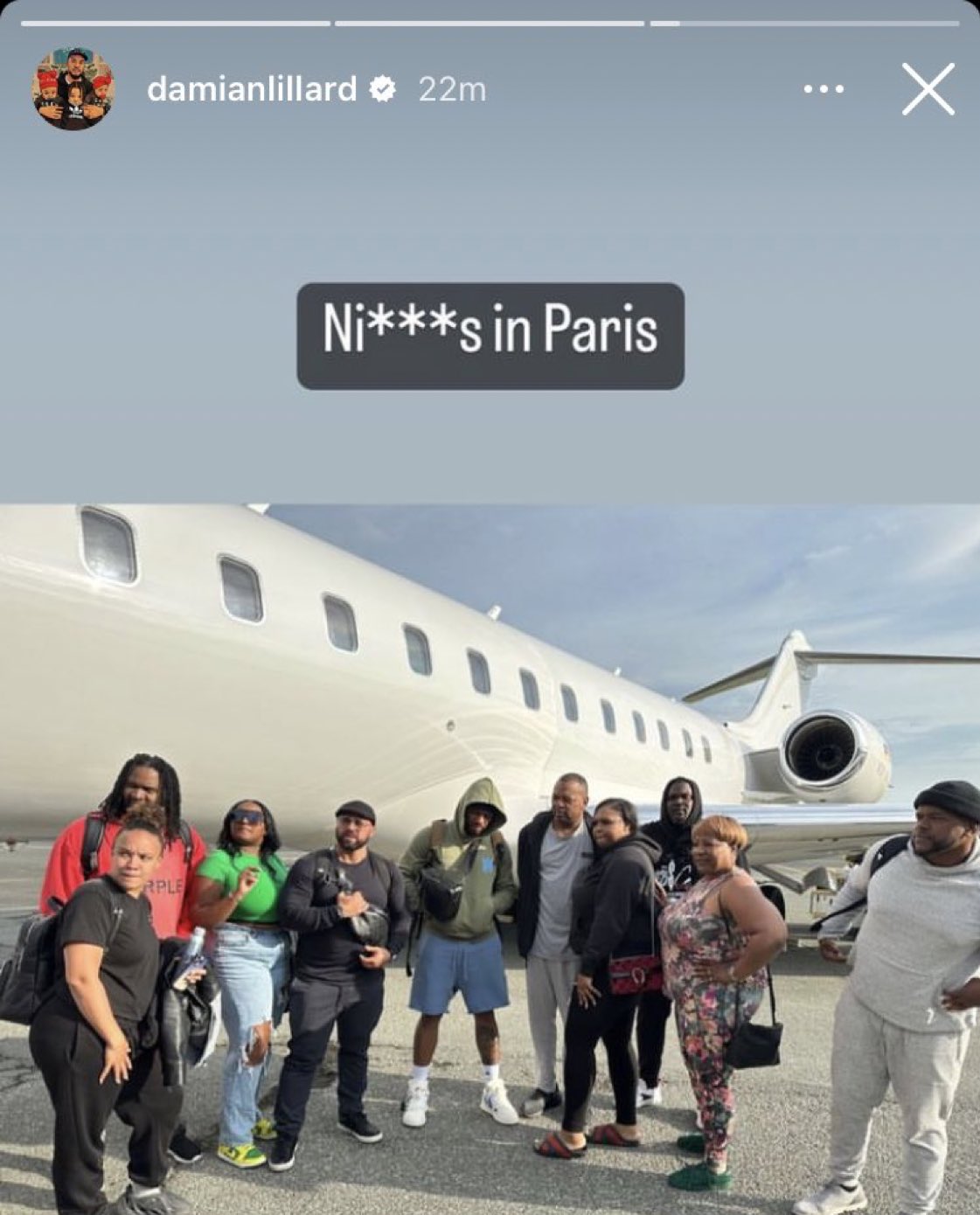 Lillard has just posted a landing photo, and the text is quite bold: “Black * In Paris (Ni *** s In Paris)”