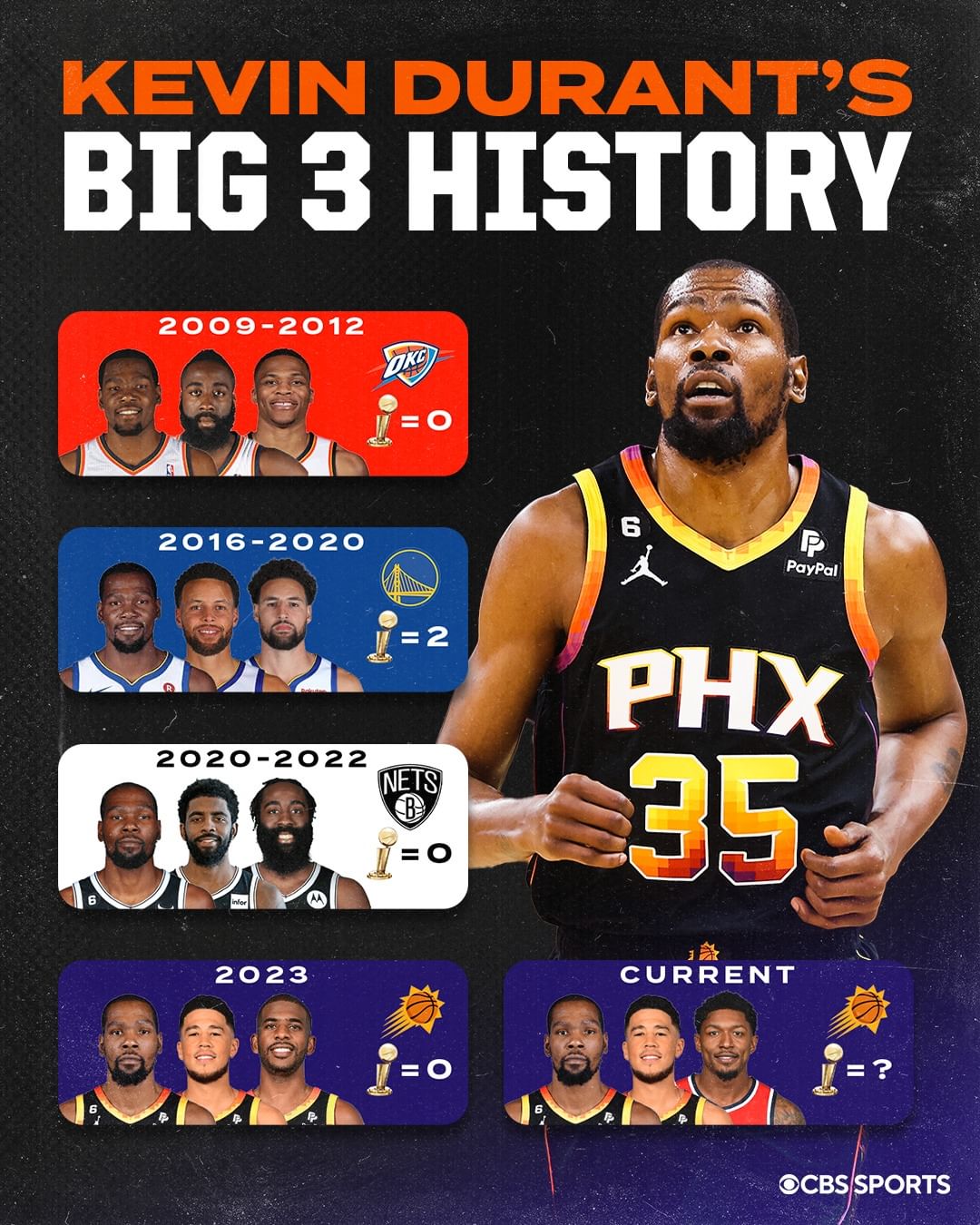 During the 23-year offseason, Durant and Booker and Bill, who gained by trading Paul, formed a new three giants. Where did their results go this time?