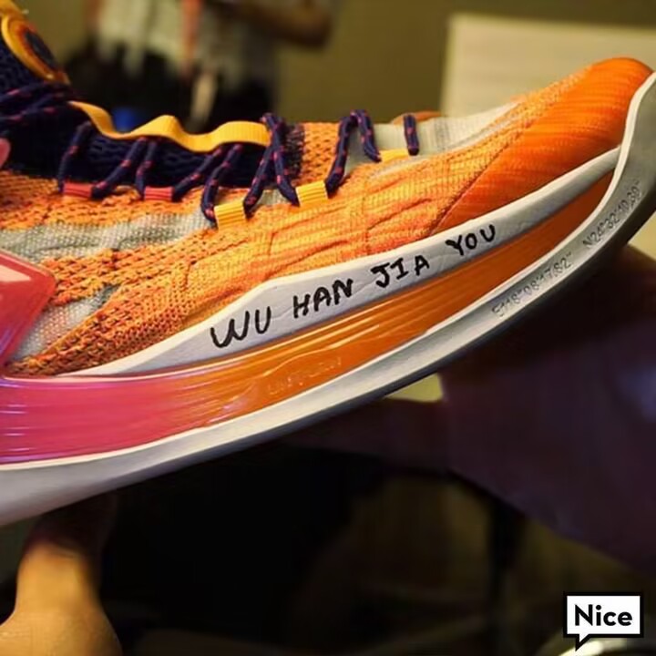This pair of shoes says ‘WU HAN JIA YOU (come on in Wuhan)’