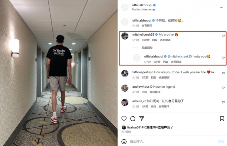 Zhou Qi’s former teammate, NBL Phoenix player Crick, wrote in the comment area, “my brother.”