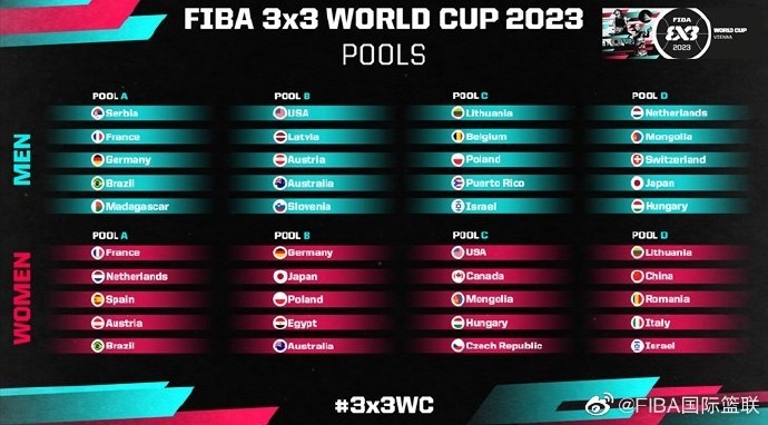 Live broadcast, May 9-today, the International Basketball Federation officially announced the grouping of men’s and women’s teams in the 3v3 World Cup. The competition will be held in Vienna from May 30 to June 4.