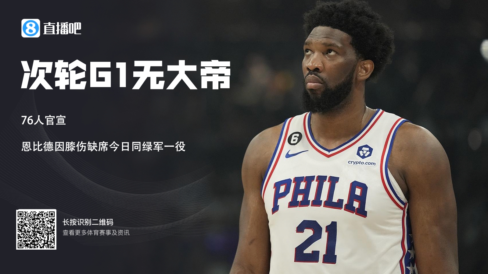 Official news of 76 people, the team Center enbide missed the game due to knee injury.