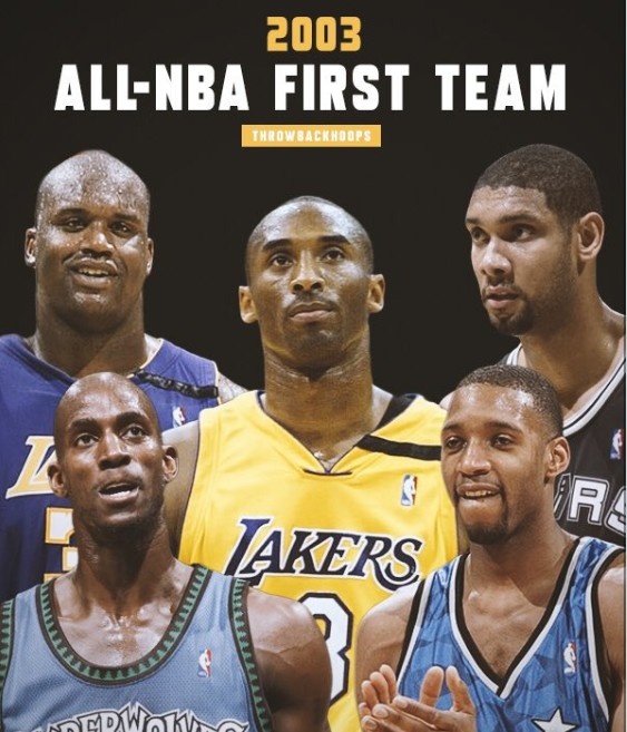 American media ThrowbackHoops showed the best team in 2003 for a while: McGrady, Kobe, Garnett, Duncan and O’Neal.