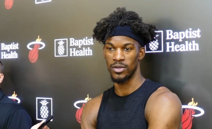 Live broadcast, April 30 today, Heat star Butler was interviewed by reporters after the training.