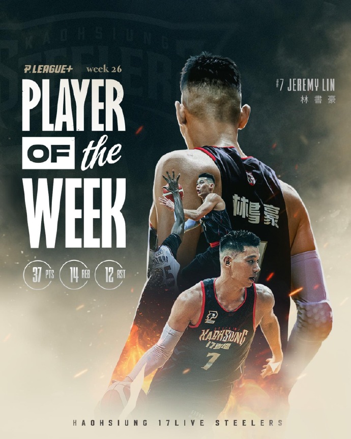 Live Bar, May 3rd News official news, Kaohsiung steel defender Lin Shuhao once again won the award of P + League Weekly MVP, which is the sixth time he has won the P + League Weekly MVP award this season.