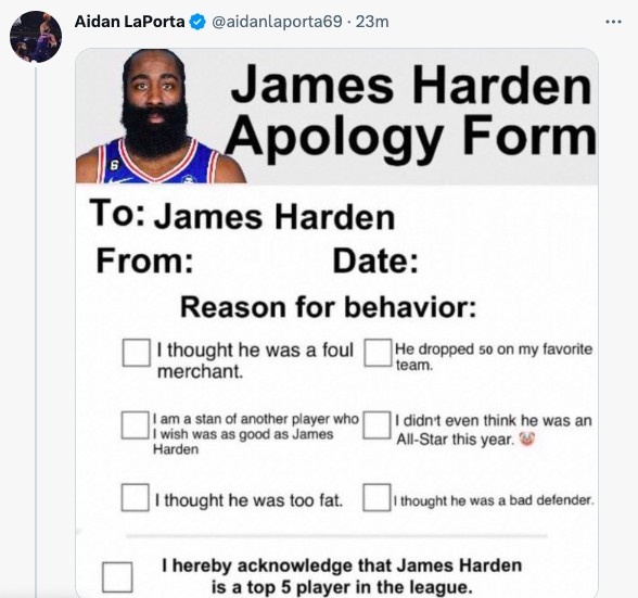 @ aidanlaporta69: queue up to apologize to Harden for the following reasons: