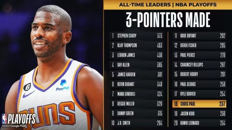 At this point, Paul surpassed Kidd and rose to the 18th place in the NBA history playoff three points. Coval (254) was in front of him.