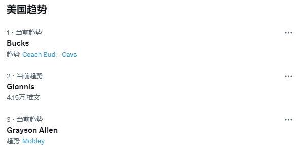 At the first time after the game, the stag, brother alphabet and Allen boarded the top three of the US Twitter hot search, and Budenholzer and hollerdi also boarded the top ten of the hot search.