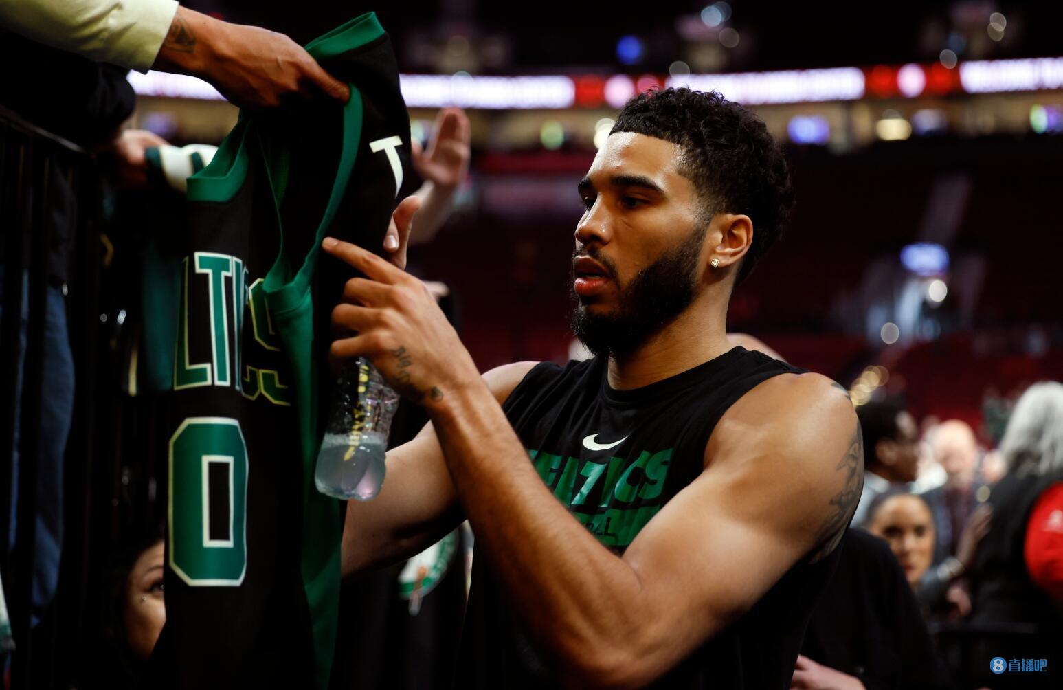Live broadcast bar, April 28 -nba playoff G6, Celtics 128-120 beat the Eagles, eliminating opponents with a big score of 4-2. After the game, Tatum was interviewed by the media.