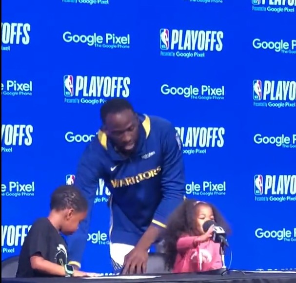 After chasing dreams, he attended the press conference and took his two children with him. In the press conference, there was also a scene of heart warming, chasing dreams and leaning down stout figure to tie shoelaces patiently for his daughter, which was in sharp contrast to his style on the court.