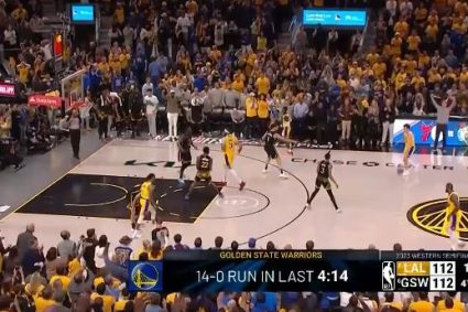 Live Bar, May 3-NBA playoffs semi-final G1, Warriors vs Lakers. In the last 4 minutes from 5 and a half to 1 and a half, the Warriors directly blew out a wave of 14-0, smoothing the difference!