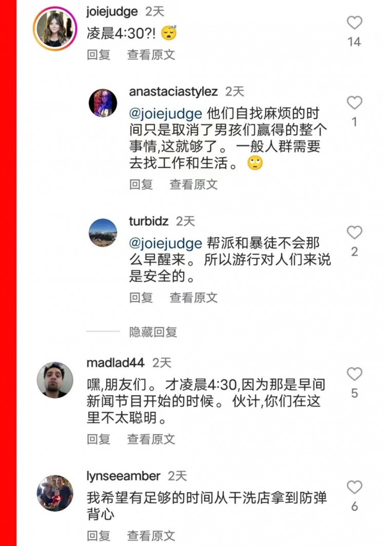 比如,当地一家隶属于NBC的新闻台预告庆功大游行,把直播时间定为清晨4:30到下午1:00,于是就有人留言说,黑帮和暴徒不会那么早起床,也有人说希望有足够的时间从干洗店拿到防弹背心,暗指丹佛这座城市很不安全。
