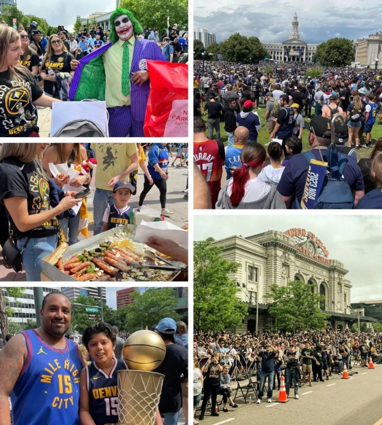 其实,丹佛并不是没有见过世面的小地方,反而是非常有名的体育城。尽管掘金是建队56年来第一次夺冠,但这座城市因为夺冠而庆功游行可是好几次了。单是冰球的科罗拉多雪崩队,去年就已经是第三次捧得斯坦利杯,掘金的庆功游行从路线到最后在联盟车站集结庆祝,和雪崩队差不多。