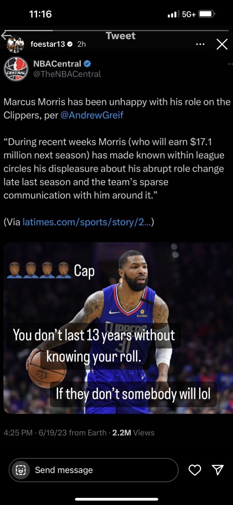 Live Bar, June 21st news according to the former Clippers reporter Andrew Greif, in recent weeks, Morris expressed his dissatisfaction with the sudden change of role at the end of last season and the team’s lack of communication in the league circle.