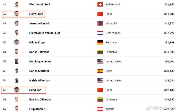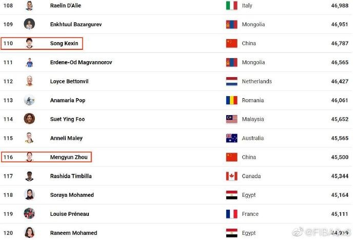 Since then, the National points and the individual points of the players have changed in FIBA’s standings. China’s three-person ranking has surpassed Germany to the 9th in the world men’s basketball, and China’s three-person ranking has remained the second in the world women’s basketball.