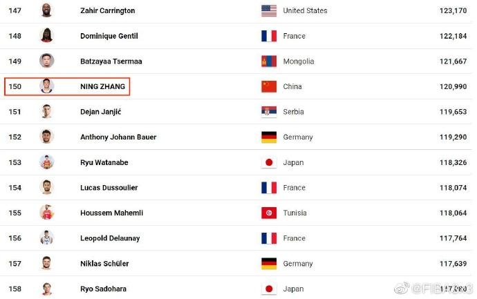 Yan Peng of the Beijing team has risen 16 places, ranking 55th in the world;