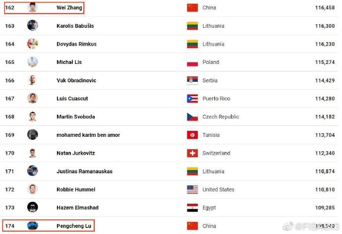Guo Hanyu of Fukuda team has risen 10 places. Currently, he ranks 47th in the world, Zhang Dianliang has risen 60 places. Currently, he ranks 101th in the world, and Chen Jianghe has entered TOP250 for the first time. Currently, he ranks 226 Th in the world!