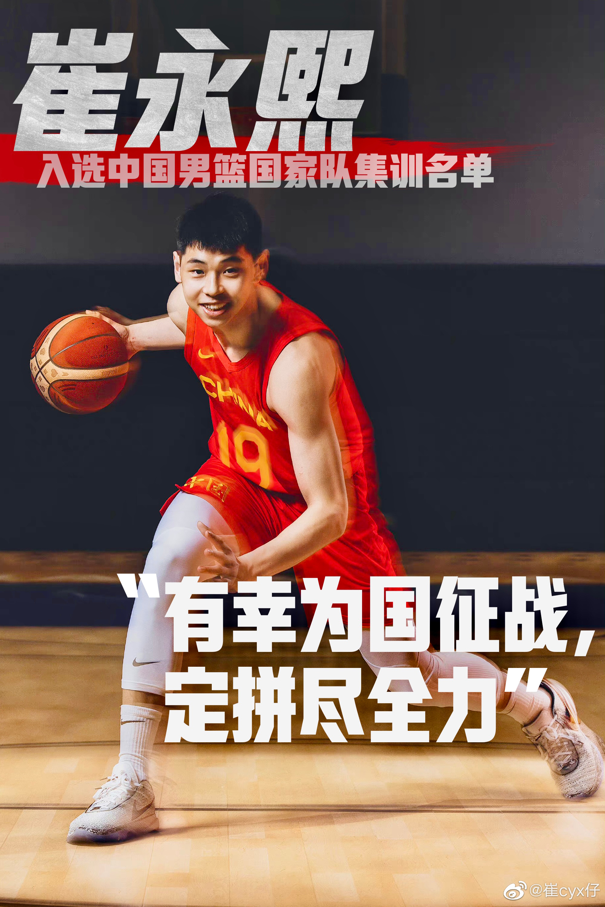 Cui Yongxi updated the photo of himself dressed in the national team’s uniform on Weibo and wrote in the accompanying article: “I am lucky to fight for my country and I will do my best.”