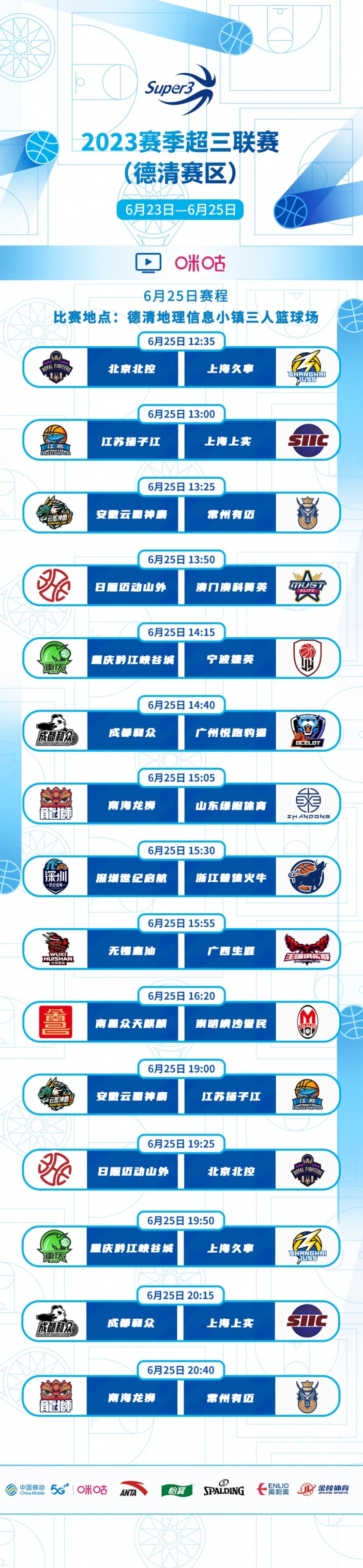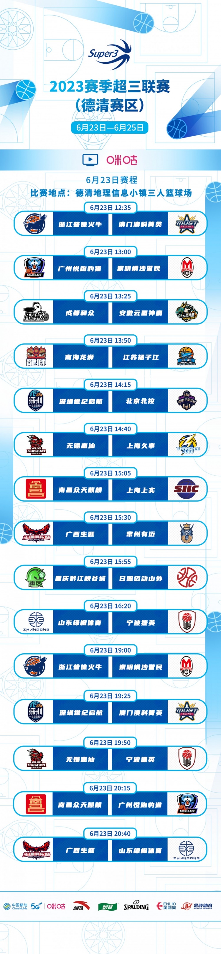 In the 2023 season, the Deqing division of the Chinese three-person Basketball League will be held in Deqing county, Huzhou city, Zhejiang province. From 23th to 25th, the super three league matches will take the lead in the war. From 26th to 27th, 11 3WL teams will make their debut in the season!