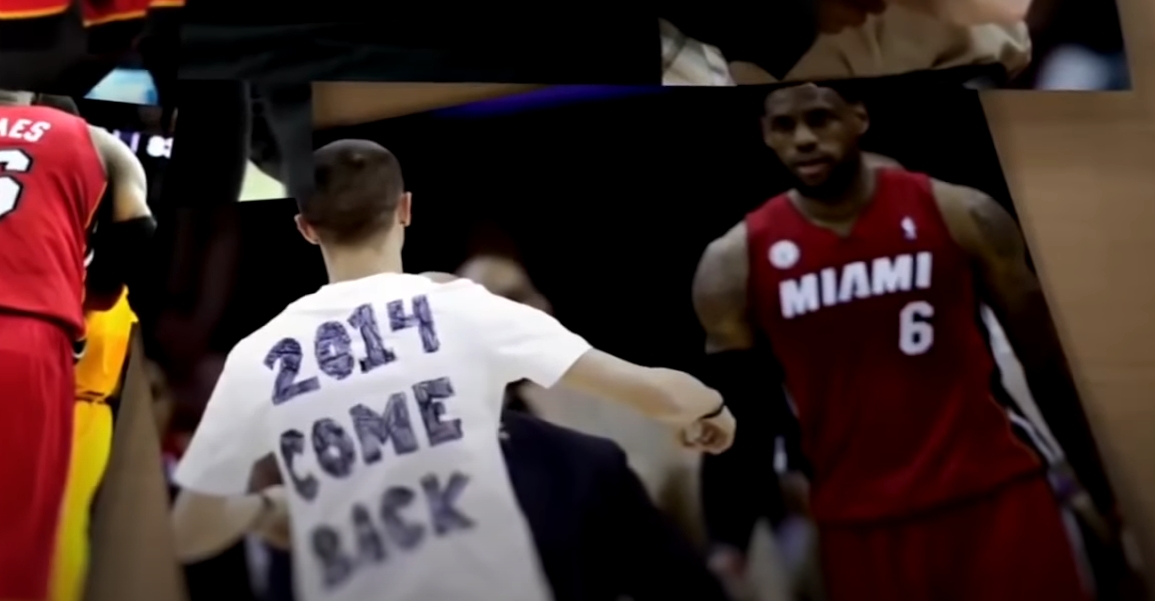 The fan was dressed in a white T-shirt with “We miss you” on the front and “come back in 2014” on the back. Like that football fan, this basketball fan named James Blair also embraced his idol, james also patted his head to show encouragement.
