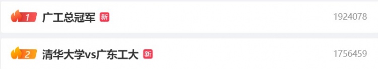 The first time after the game, the entries of “Guanggong champion” and “Tsinghua University VS Guangdong University of Technology” rushed to the top two on Weibo.
