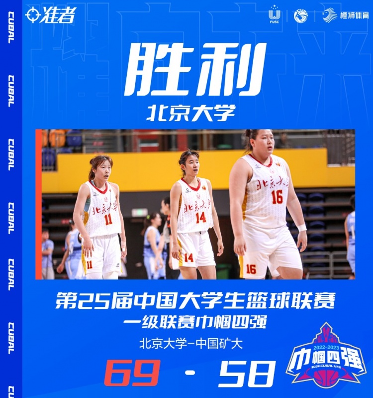 In the fourth section, Peking University First took 4 points to expand its advantage to 20 points. China Mining University took turns to impact the internal line and even cast a penalty to support it. Wang Zhen stole and fought back successfully, china Mining University exited the points to continue the hope, and Peking University made a strong attack on the inside line to keep ahead of the killing penalty. China Mining University struggled to catch up with no results. In the end, Peking University defeated China Mining University 69-58 and won the third place in this competition.