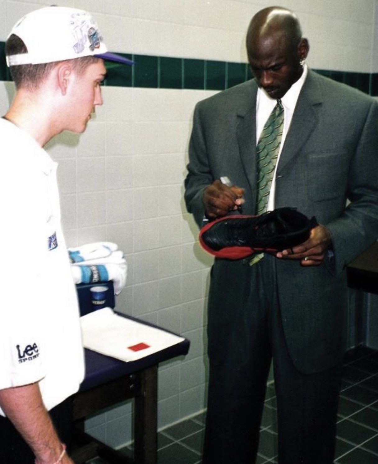 Jordan was wearing AJ12 The Flu Game on The spot. After The Game, he signed his sneakers and gave them to jazz Caddy Preston Truman. The latter knows Jordan’s living habits very well and prepares apple sauce whole wheat biscuits for Jordan before every game.