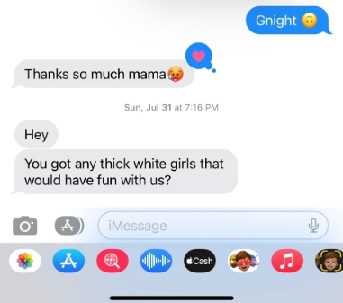 (Part of the SMS chat records between Zion and the female owner: the content is that Zion asks if it can be a black and white match)