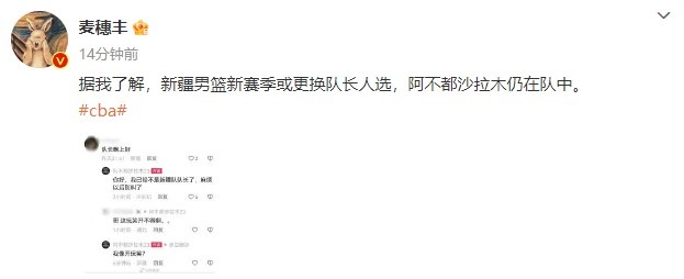In this regard, media person @ Mai Suifeng wrote on his personal microblog: “As far as I know, in the new season of Xinjiang men’s basketball or the replacement of the captain, aludu salad wood is still in the team.”