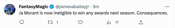 @ jamesabaileyjr: Morant is now unable to select all Awards next season, retribution.