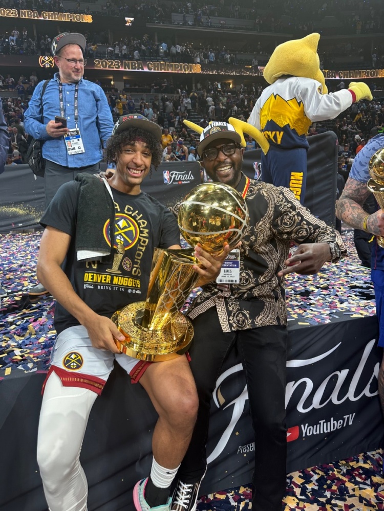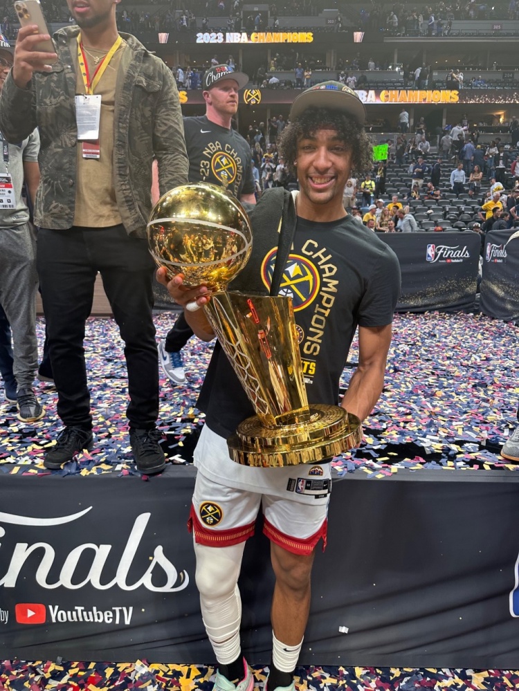 Nuggets player Naji posted photos of himself and his family holding the championship trophy and wrote: “All honors come from the highest blessings.”