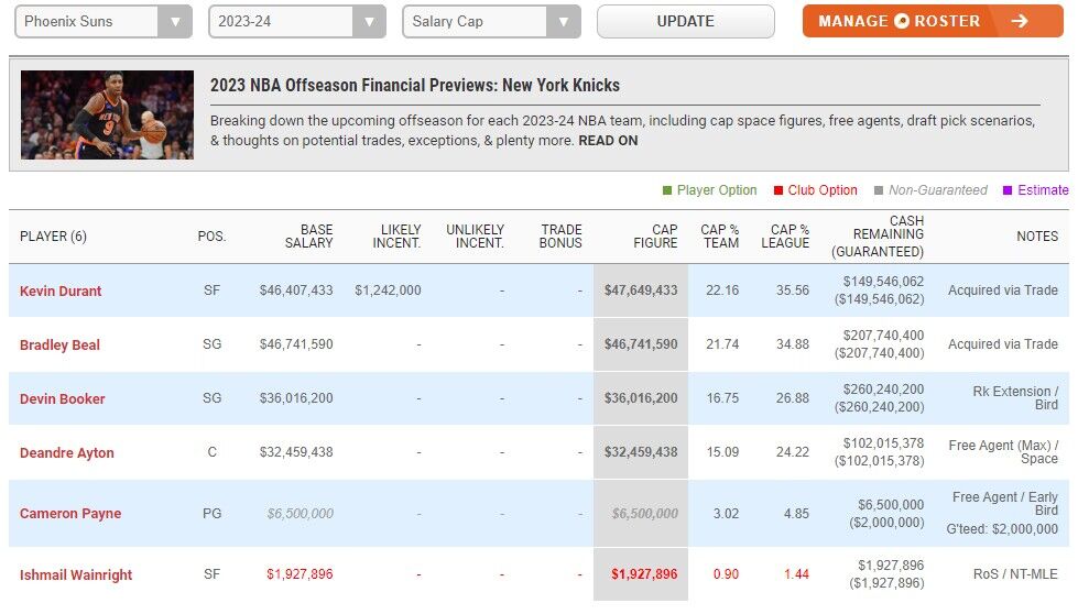 In addition, the Suns also have the team options of Wayne Wright.