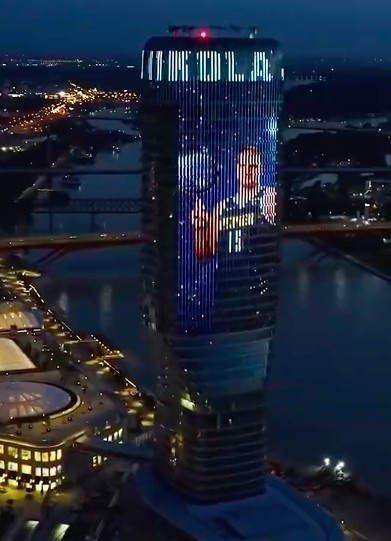 Today, Belgrade Tower (42 floors, 168 meters high), the tallest building in Serbia, staged a cool light show to celebrate jokiki’s NBA championship.