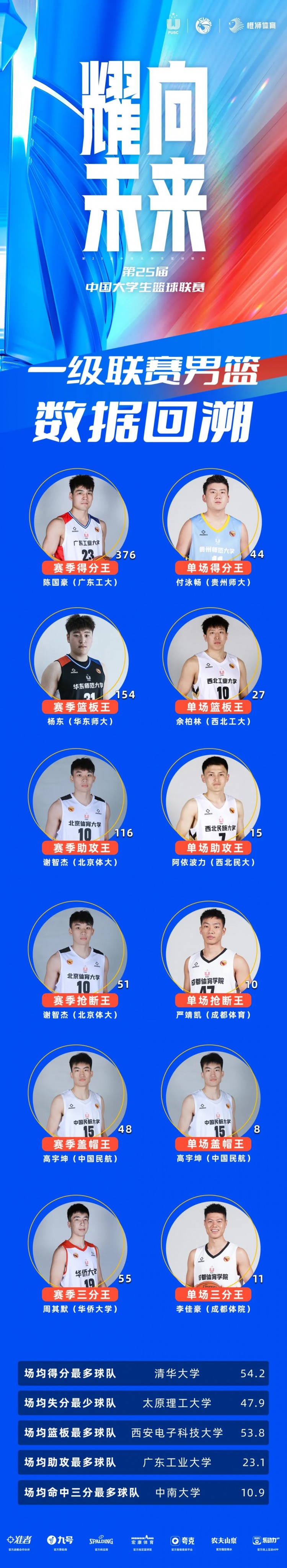 In terms of data of men’s basketball this season, Chen Guohao won the season’s scoring king. Xie Zhijie, a big man in Beijing, took the season to help the King and rob the King. Yang Dong of East China Normal University won the season rebounder, and Gao Yukun of China Civil Aviation won the season blocked shots, zhou Qimo, Huaqiao University, won the three-point King of the season!