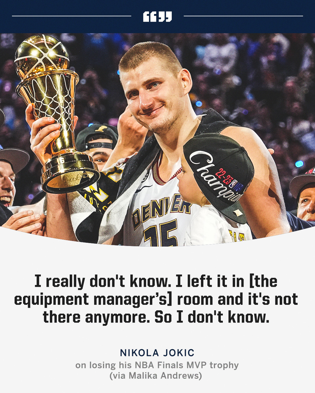 Live Bar, June 15 according to ESPN reporter Malika Andrews, Jokic’s FMVP trophy is being properly kept by Nuggets.
