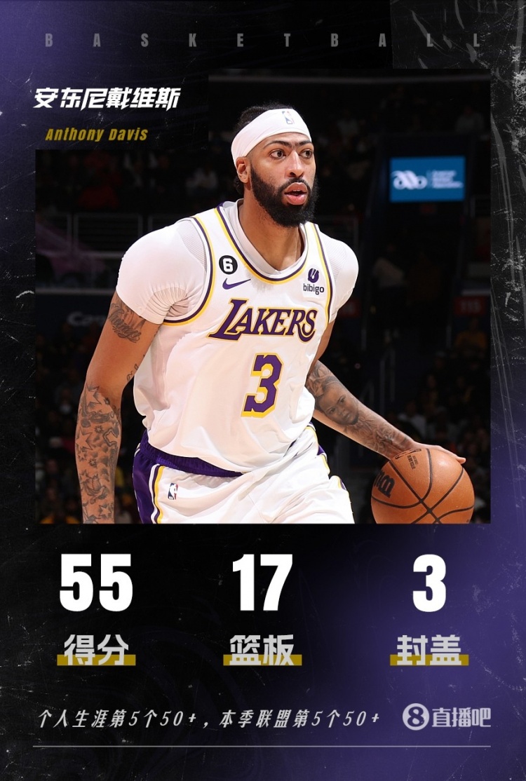 On December 5, 2022, in the NBA regular season when the Lakers beat the Wizards 130-119, the heavy eyebrows broke out. He made 22 of 30 shots, 2 of 3 points and 9 of 9 free throws, cut 55 points, 17 rebounds, 1 assists, 3 cap.