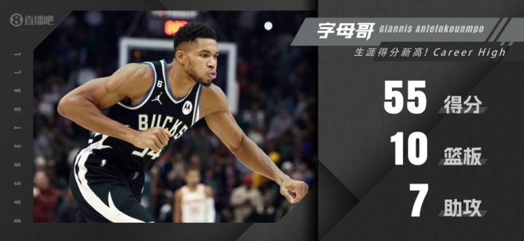 The stag star letter brother played at 36 minutes 34 seconds, 33 shots of 20, 15 free throws of 16, 55 points for 10 rebounds and 7 assists, 55 points for a new career.