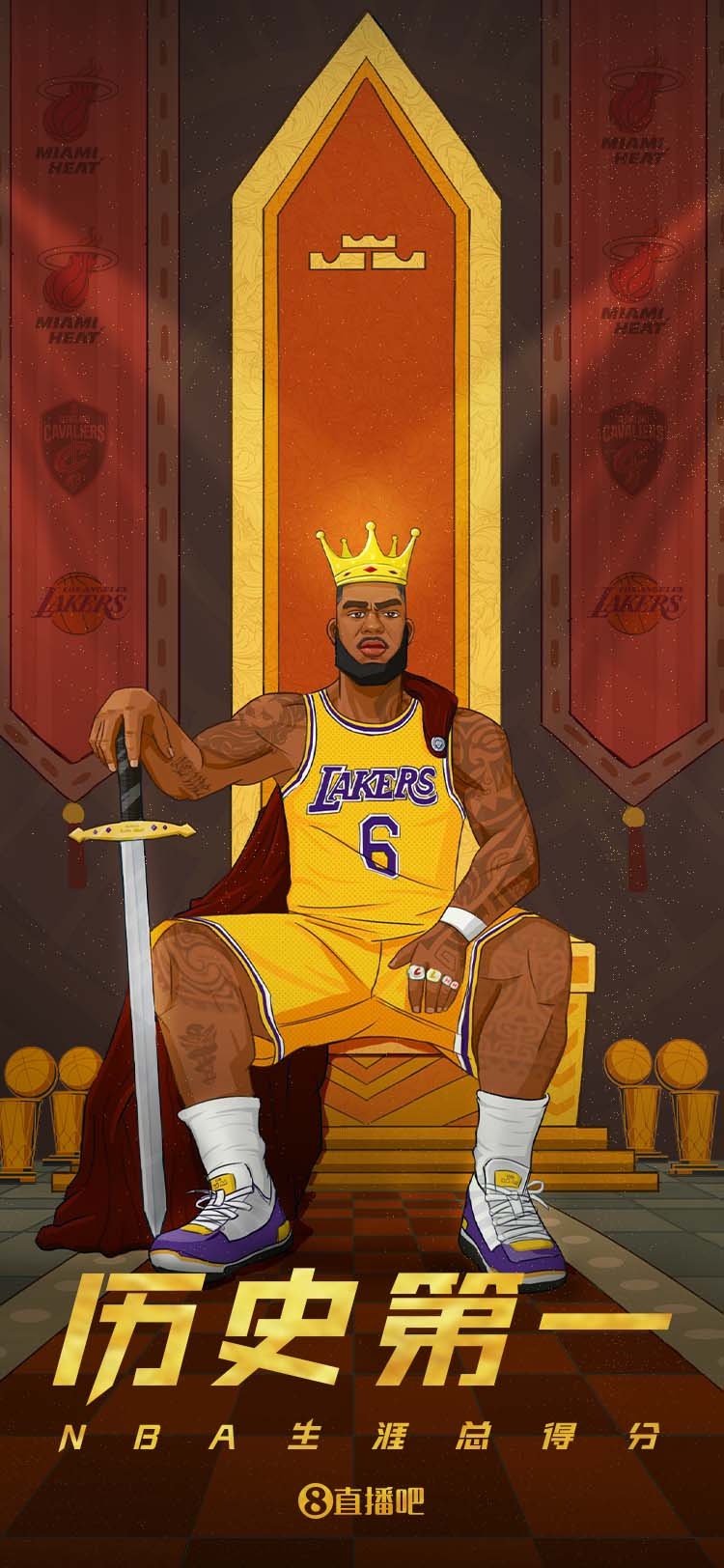 In the third quarter of the game, James wrote back jump shot in his life. The total score of his career came to 38388 points, surpassing the famous Jabal (38387 points) and officially crowned the NBA history scoring king, which has reached 38652 points.