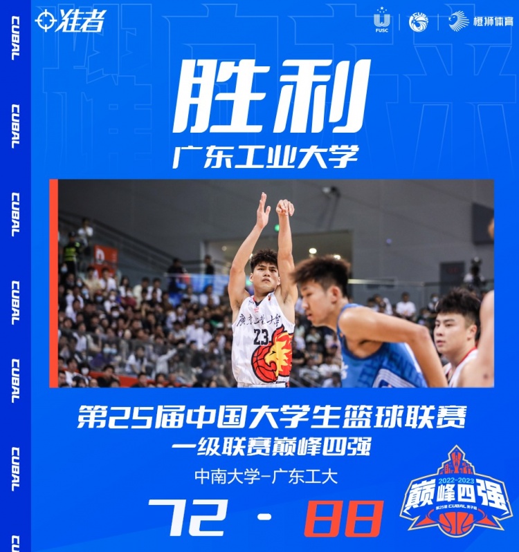 In the fourth section, Gong Sicheng first scored three points. Guangdong university of technology continued to make efforts to play 15-3 points in a row and achieved a double-digit lead in smackdown. Zhao Zhongxing used his personal ability to support two goals in a row, chen Guohao even got a penalty of 6 points to help Guangdong University of Technology maintain a double-digit lead. The trend of Central South University has been unable to return to the sky. In the end, Guangdong University of Technology defeated Central South University 88-72 and won the finals with Tsinghua University.
