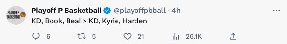 @ playoffpbball:KD, Booker, Bill is stronger than KD, Owen, Harden