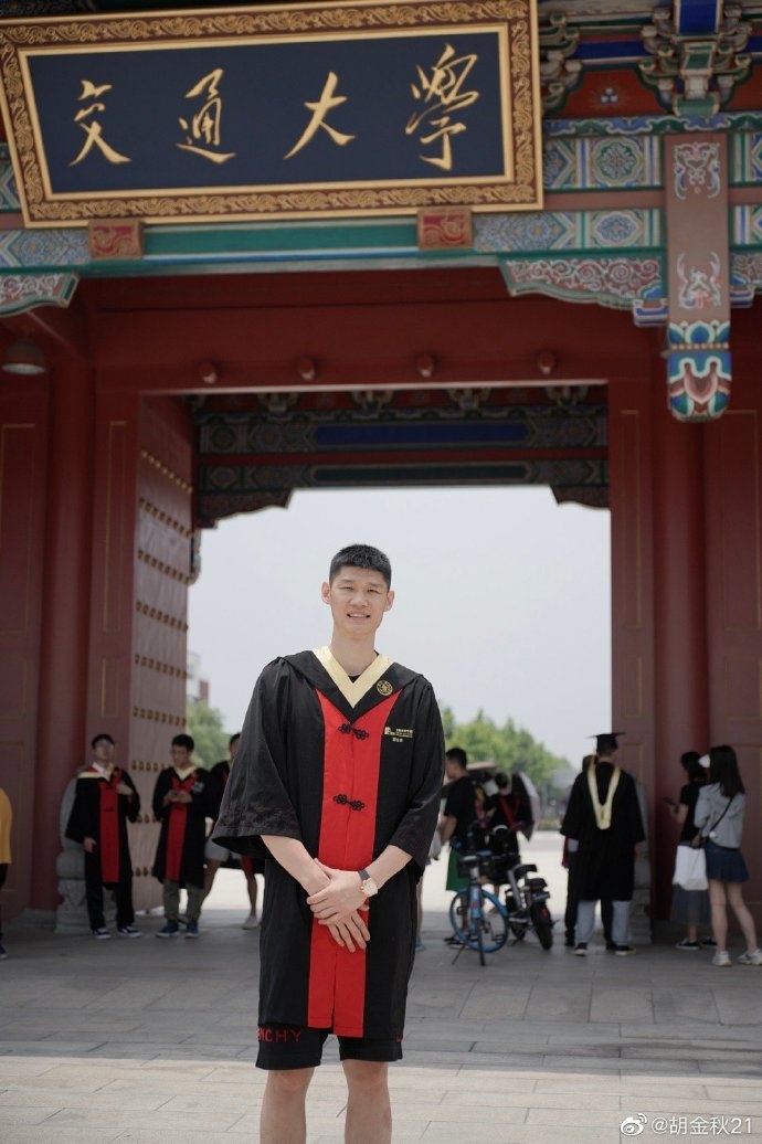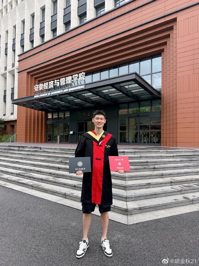 Live Bar, June 21 today, Hu Jinqiu, the captain of Guangsha men’s basketball, posted his graduation photo on his personal microblog.