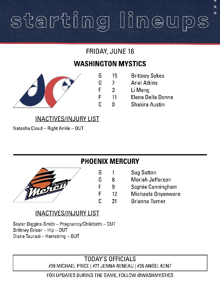 Live Bar, June 17 -wnba regular season, Washington mystery man VS Phoenix Mercury, Chinese player Li Meng started the game!