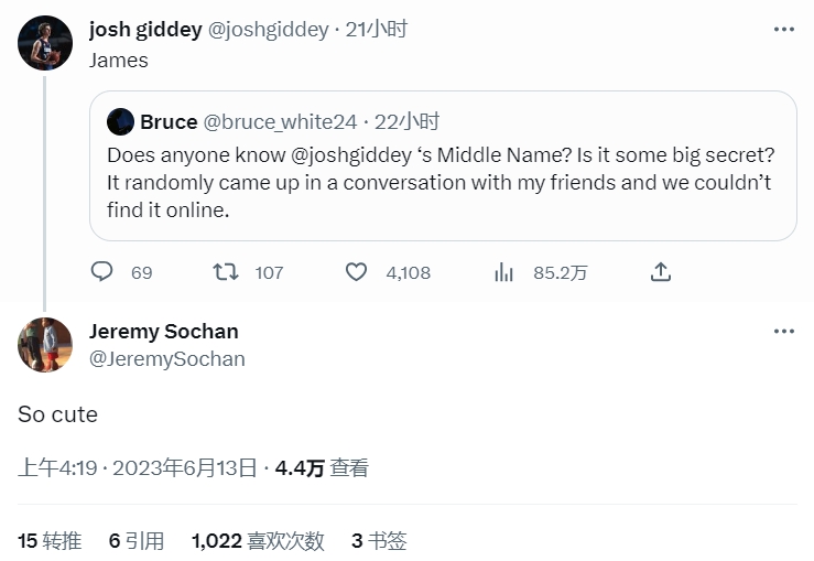 Kitty forwarded the Twitter and replied, “James (meaning the middle name is James).”