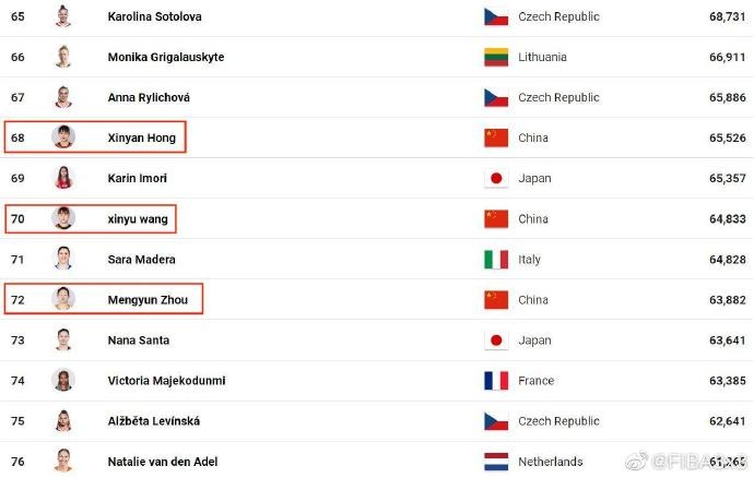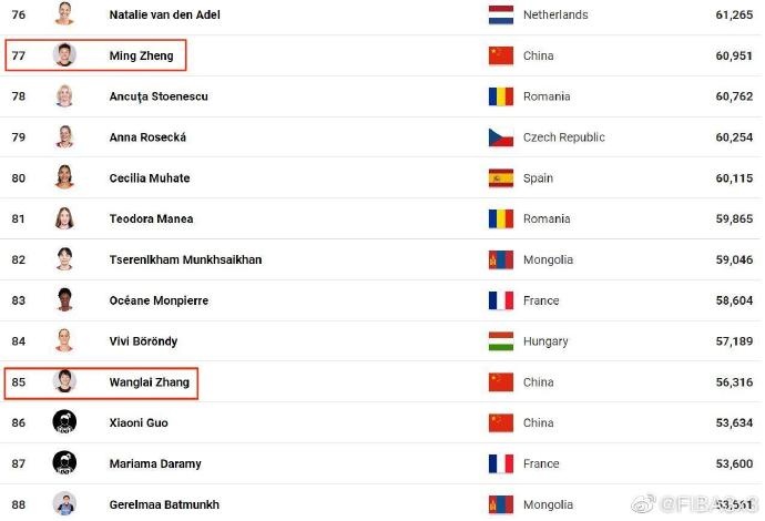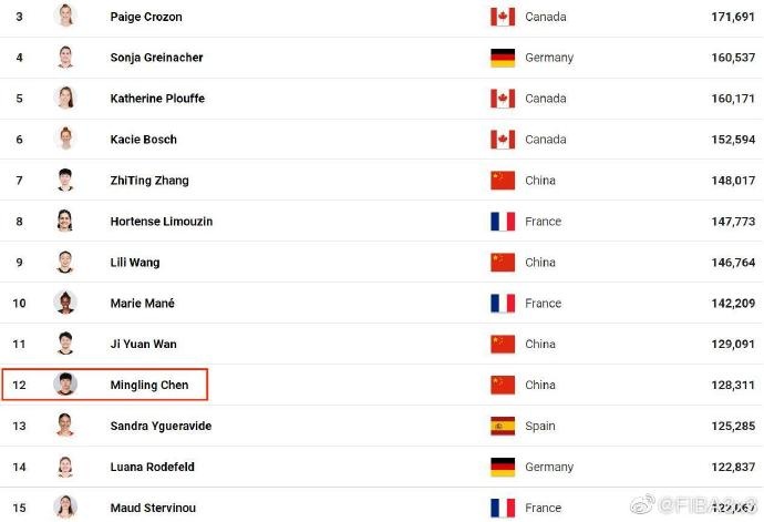 Chen mingling of the Chinese team has risen to 9 places. Currently, it ranks 12th in the world, Hong Xinyan has risen to 78th in the world, and Wang Xinyu has risen to 67 places. Currently, it ranks 70th in the world, zheng Ming rose 125 places, ranking 77th in the world;