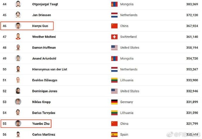 Guo Hanyu of Futian team has risen to the 46th place in the world and Zhang Dianliang has risen to the 97th place in the world. Wu Xingrui, who joined the competition in Riga, has entered TOP250 for the first time and is currently ranked 219th in the world.