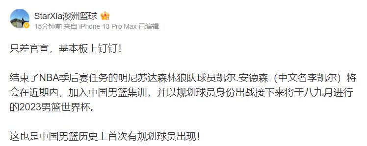 The Minnesota Timberwolves player, Carl Anderson (Chinese name Li Kelle), who ended the NBA playoff mission, will join China’s men’s basketball training in the near future, and play as a naturalized player. The next 2023 men’s basketball World Cup will be held in August and September.