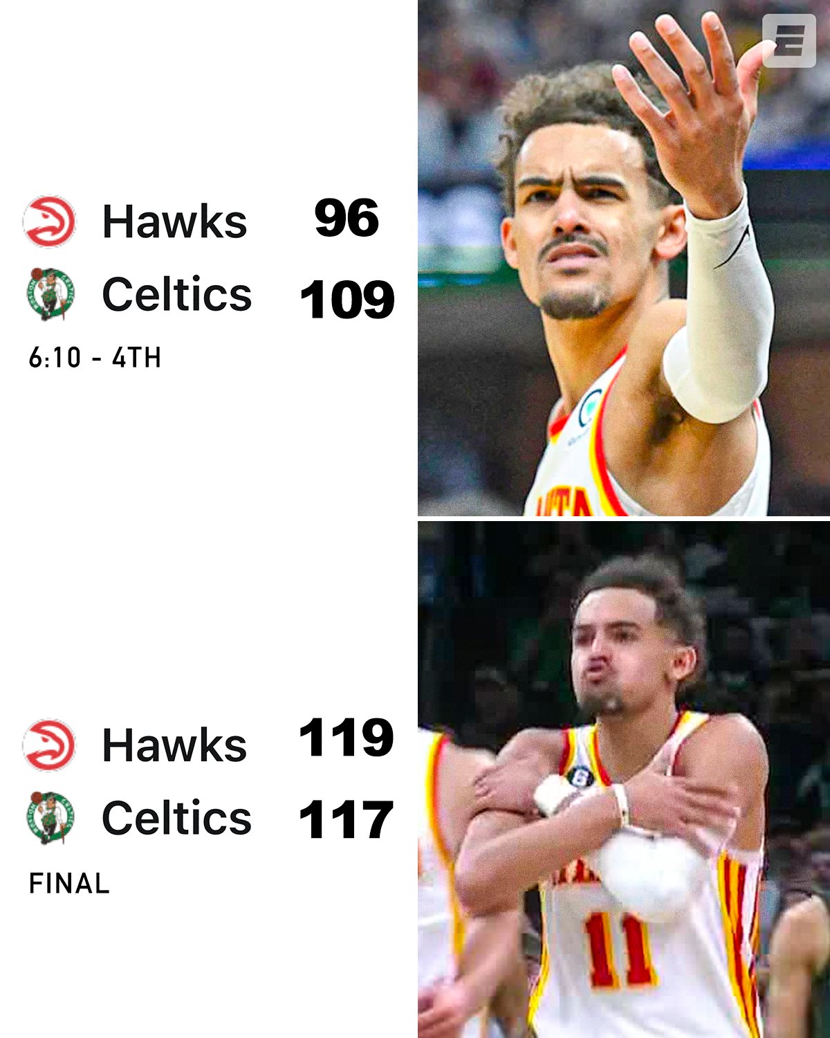 特雷-杨表情变化:6分钟落后13分算什么 最后绝杀成功装X