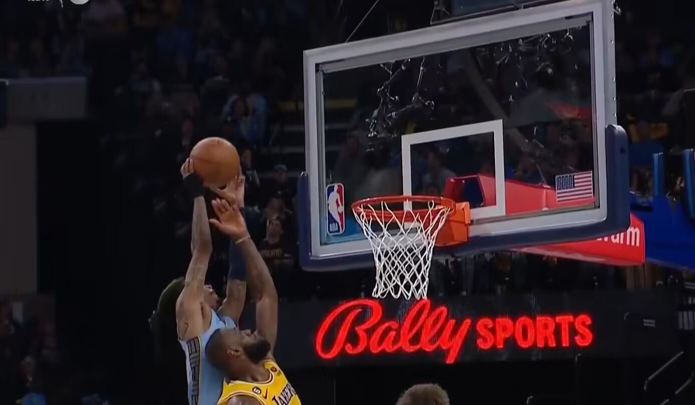 跳得太高了!莫兰特起飞双手力压詹姆斯隔放2+1