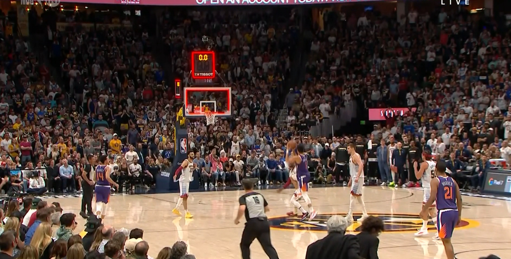 这都进了!布克半场三分推射打板命中 可惜超时了啊!