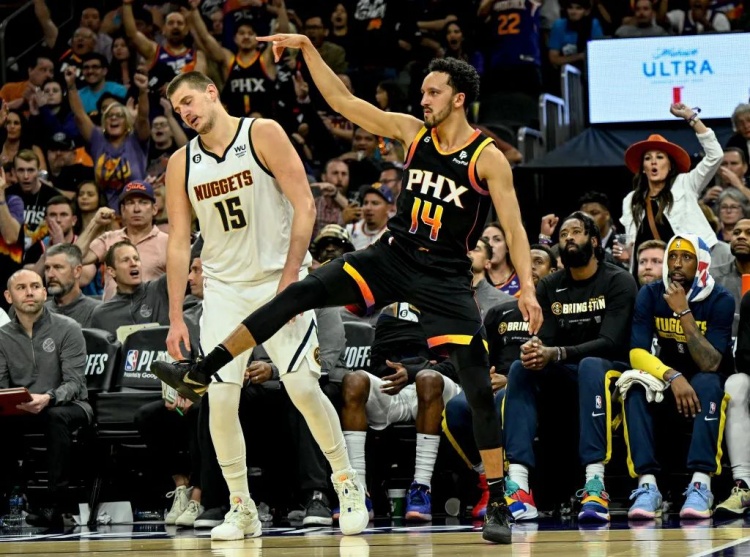 Sun’s current offensive station is too coquettish. Not only Booker and Durant stand arch top, but even stand on the strong side. One is attacked and immediately transmitted back to the other, reducing the risk of mistakes in the direct plug Middle Road or the bottom corner. It is impossible for nuggets to leave four players online, which is equal to arch top receive the ball. The big brother receive the ball must be 1 hit 1-that’s enough. Both of them have strong emergency stop jump shot skills, three points, breakthrough and emergency stop are more than enough for the investment center to handle a fixed point;